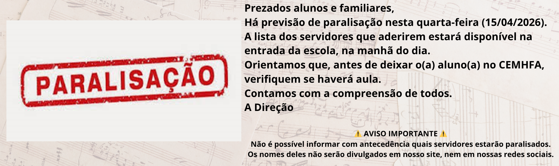 ATUALIZAÇÃO – SUSPENSÃO DAS AULAS CONTINUA ATÉ 27/02/2026