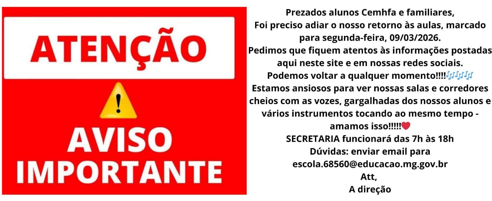 AVISO - VOLTA ÀS AULAS CEMHFA E HORÁRIOS 2026