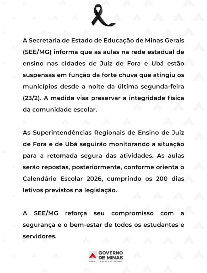 COMUNICADO OFICIAL - SUSPENSÃO DAS AULAS EM 24/02/2026